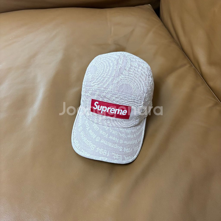 슈프림 캠프캡 모자 박스로고 자카드 데님 브라운