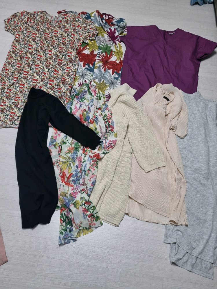 88~프리사이즈 여성 의류 8벌 일괄 판매합니다~ - by youl 브랜드의 화려한 꽃무늬 원피스 포함되어 있습니다 - 가슴단면, 총장 사이즈는 사진 참고해주세요 - 전체적으로 깨끗한 상태입니다. - 니트 원피스는 손세탁 후 건조대에 널어뒀더니 건조대 줄 자국이 생겼어요. 물만 살짝 뿌리시면 없어질듯해요.