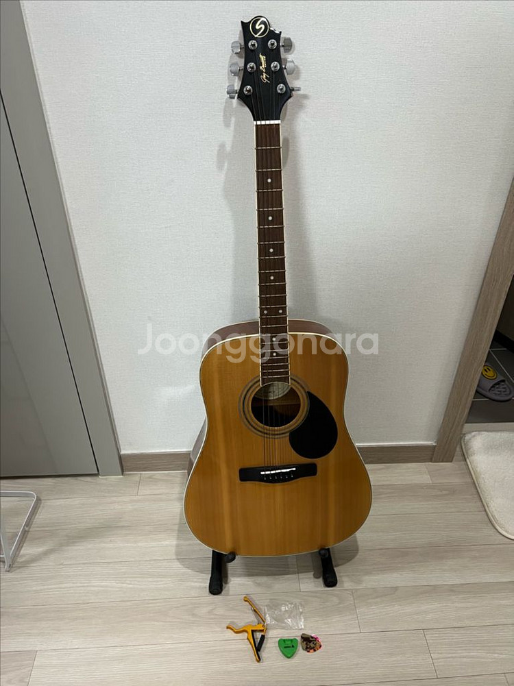 입문용 통기타입니다. 안쓴지 오래되어서 먼지가 많으나 닦으면 새거같습니다. 사진에 있는것처럼 통기타 거치대와 카포, 피크까지 모두 드립니다. 가방은 없습니다. 직거래는 보평역서희스타힐스아파트 정문입니다.