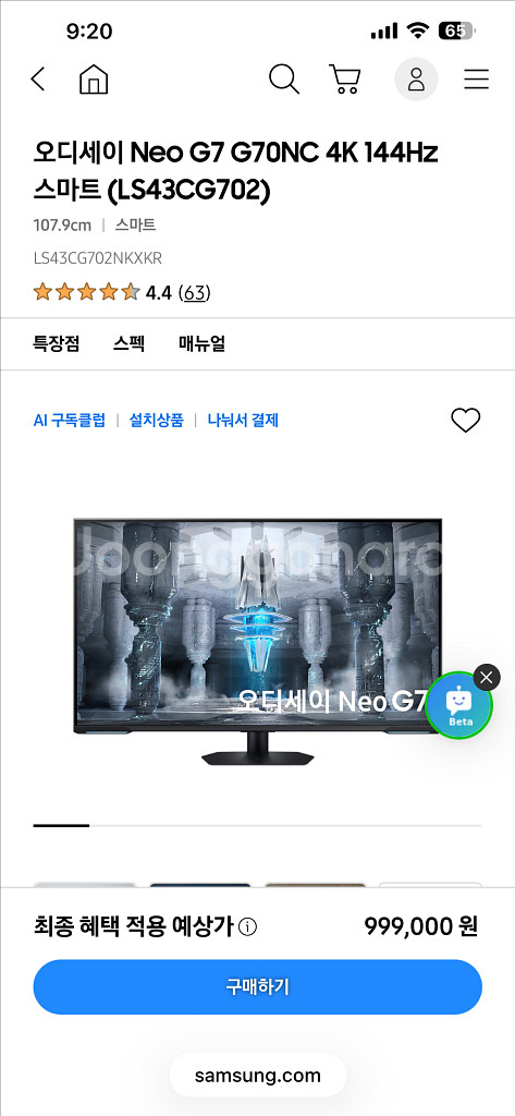 삼성 오디세이 Neo G7 S43CG702 43인치 게이밍 모니터입니다 - 4K UHD 해상도로 선명하고 생생한 화질을 제공합니다 - 144Hz의 높은 주사율과 1ms의 빠른 응답 속도로 잔상 없는 부드러운 화면을 즐길 수 있습니다 - HDR을 지원하여 더욱 깊이 있는 색감과 명암비를 경험할 수 있습니다 - 게임에 몰입할 수 있도록 도와줍니다 - 구성품은 리모컨과 스탠드 있습니다 구매시기 : 2025.09 무상보증기간 남음 (구매일로부터 1년) 판매가 낮춤 네고 불가 부피가 커서 택배 불가합니다