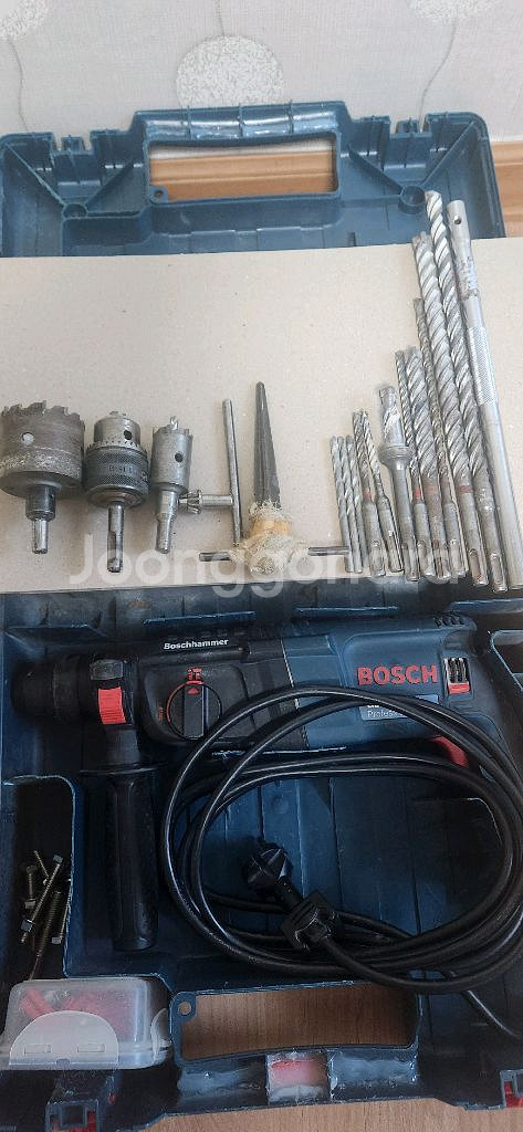 -보쉬의 베스트셀러 유선 로터리 해머드릴 GBH 2-26 모델입니다. *상태: 외관상 사용감은 좀 있지만 힘 좋고 작동 양호합니다. *구성품: GBH 2-26 본체 및 전용 케이스 다양한 사이즈의 콘크리트 SDS 비트 (사진 참조) 홀쏘 및 어댑터, 척 키 등 포함 *비트 구성품만 따로 사려 해도 비용이 꽤 드는데, 일괄로 판매합니다. *시즌 때 서브기사로 배우며 활동해서 이용횟수는 많지 않아요. **'구매 후 교환·환불 안됩니다.'**