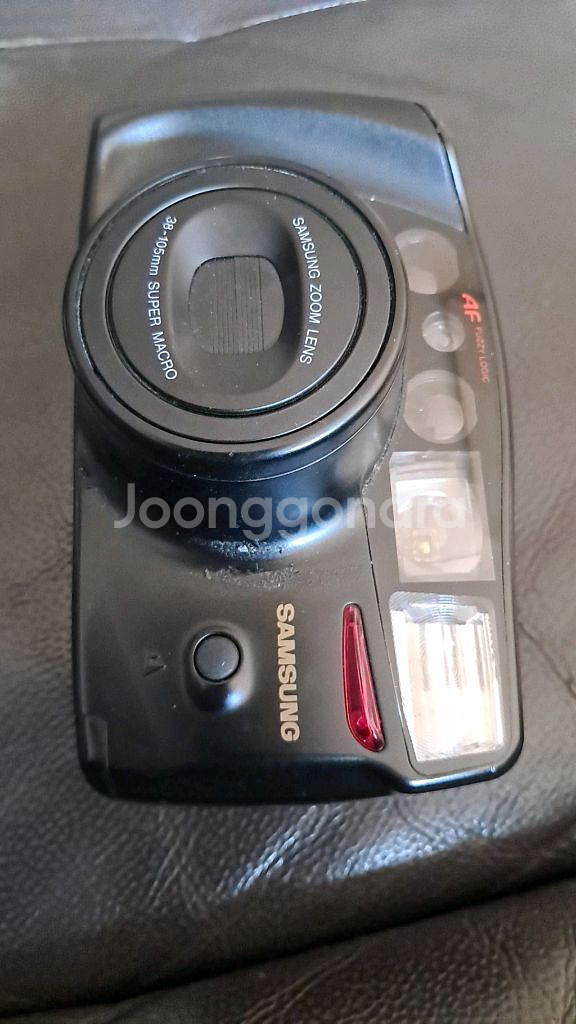 삼성 퍼지 줌 1050(Samsung Fuzzy Zoom 1050) 필름 카메라입니다. 렌즈: 38-105mm 줌 렌즈를 탑재하여 다양한 화각 촬영이 가능합니다. 기능: 슈퍼 마크로(Super Macro) 기능을 지원하여 가까운 거리의 피사체 촬영에 유리합니다. 특징: 자동 초점 및 다양한 촬영 모드(풍경, 포트레이트 등)를 갖춘 컴팩트 필름 카메라입니다. 배터리: 일반적으로 CR123A 배터리 2개가 사용됩니다