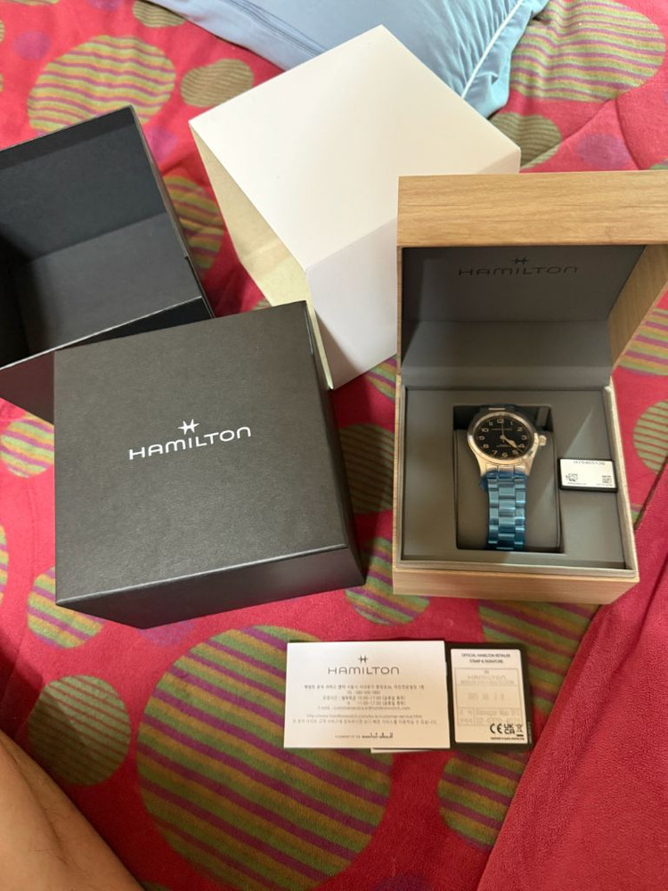 개인정보(거래정보)를 주고받는 행위는 사기에 노출될 수 있으므로 즉시 중고나라로 신고해 주세요울산 직거래만 합니다 해밀턴 머피38mm 브슬버전 비닐도 안뗀 새상품입니다 보관만하다 판매결정 120만원 택배는 계좌거래시 우체국 발송해드립니다, 안전거래는 안합니다