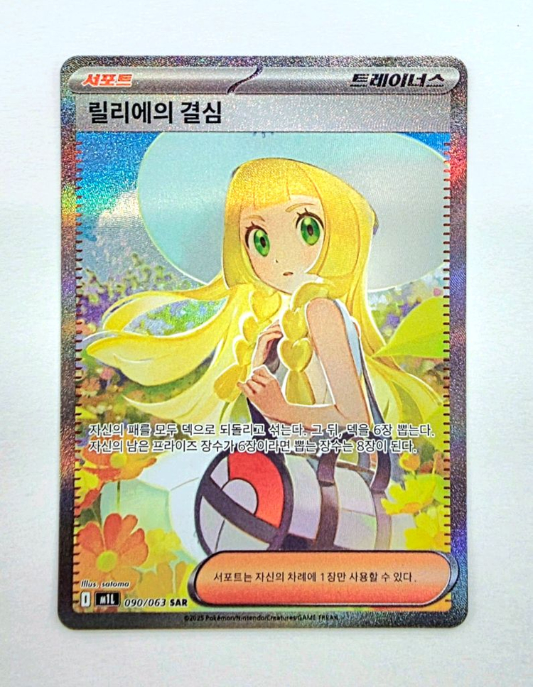 포켓몬카드]릴리에의 결심SAR S급 카드판매합니다. 뽑자마자 슬리브 탑로더 보관중입니다. 뽁뽁이 2중 안전 포장 후 발송해드립니다. 안심결제 가능합니다.