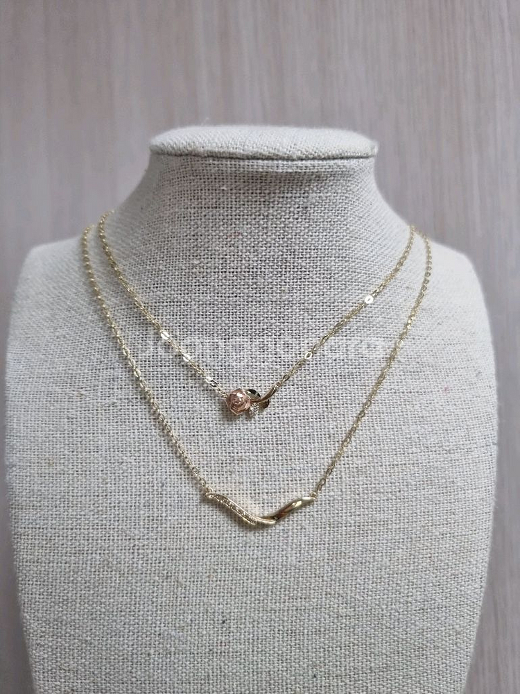 14k 일체형목걸이 두가지디자인 소개드려요~ 장미모양 금중량 1.75g 43cm 38만 브이라인 금중량 1.78g 45cm 40만 장미는 화사하고 여성스럽고 귀여워요♡ 브이라인은 깔끔한 디자인으로 착용시 세련된 스타일입니다