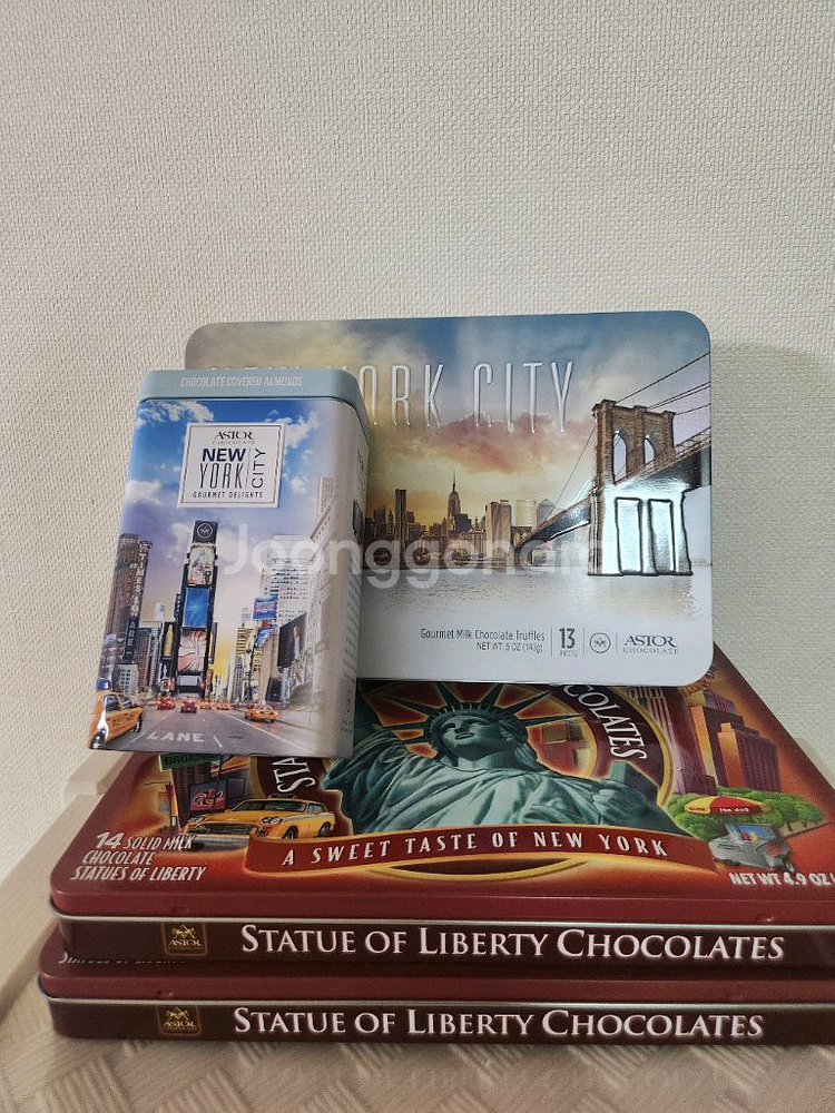 아스토 초콜렛 틴 케이스 4개 - 뉴욕시티와 자유의 여신상 디자인이 예뻐요 - 장식용으로도 좋아요 GS25 반값택배 포함 6천원 반품사양합니다.