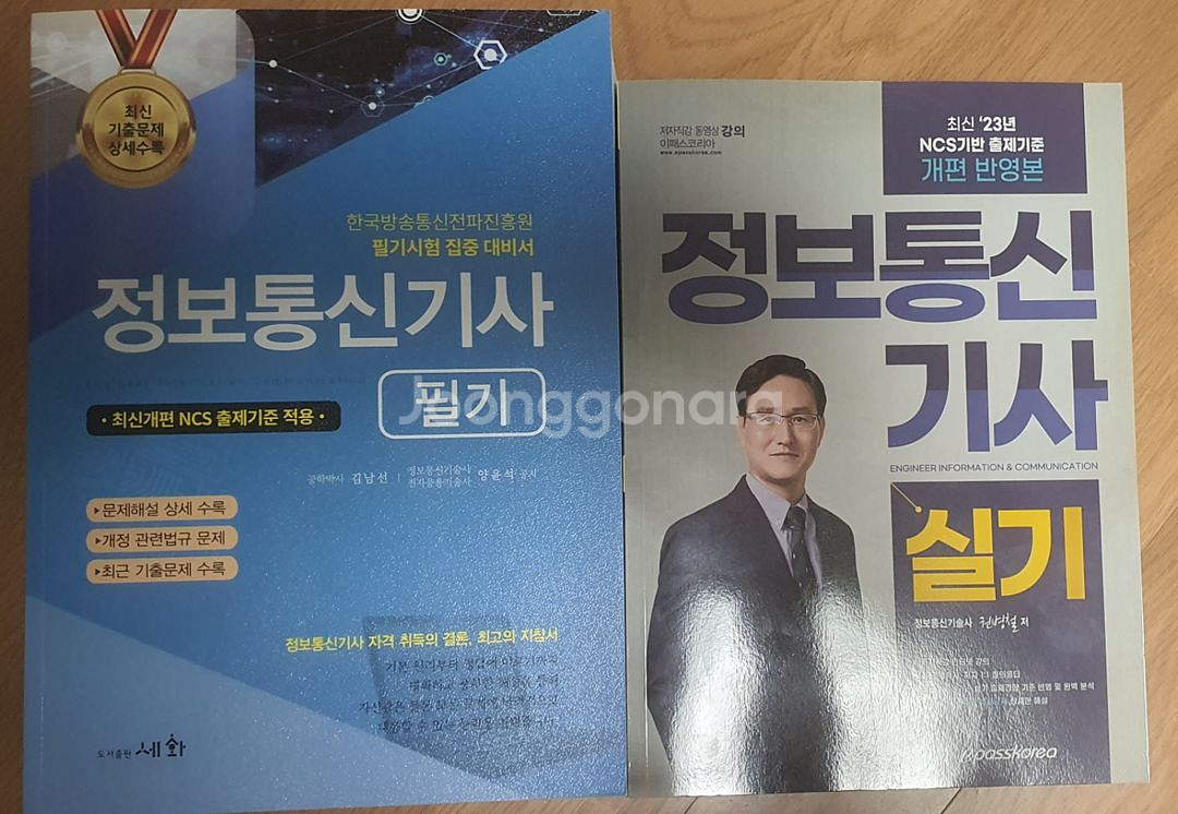 정보통신기사 시험 대비용 필기와 실기 교재 세트입니다. 깨끗한 상태로 시험 준비에 도움이 될 것 같아요. 완전 새책입니다.