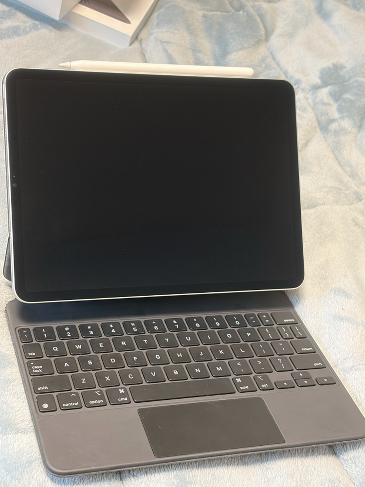 아이패드 프로 11인치 M1 + 매직키보드 정품 + 애플펜슬 2세대 정품 일괄 판매합니다. 전체적으로 상태 깔끔합니다. 아이패드는 테두리 부분에만 살펴보면 미세한 까짐 몇개보이고 액정은 깔끔합니다 매직키보드는 뒷면이랑 테두리쪽에 까짐 2-3개 정도 있습니다 기능 전혀이상없고 사용감 적습니다. 추가사진 희망하시면 보내드립니다 충전기는 어댑터는 있고 선은 없습니다 애플펜슬은 상자를 버려서 없고 패드랑 키보드는 상자있습니다. 배터리 성능 93프로입니다.