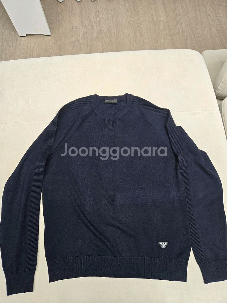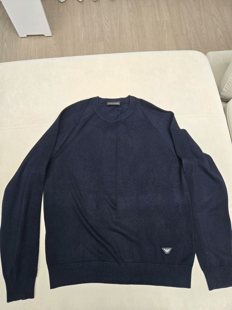 알마니 남성용 니트 스웨터입니다. 깔끔한 네이비 컬러로 어디에나 잘 어울리고, 상태도 양호해요. 고급스러운 디자인으로 특별한 날 착용하기 좋습니다. 사이즈 100-105