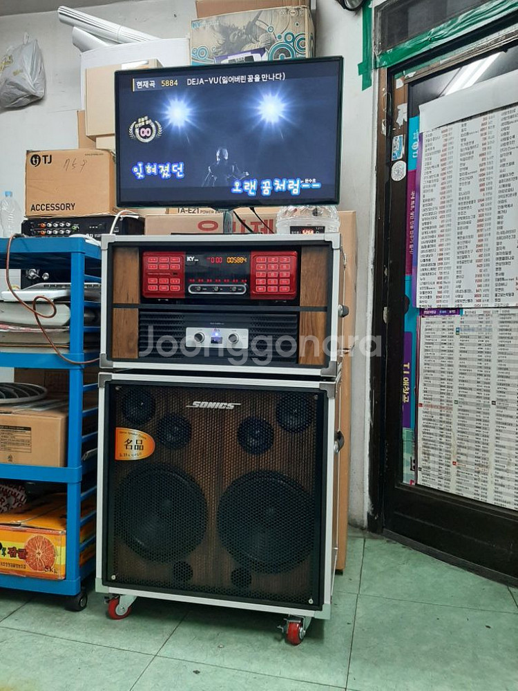 고급형 노래방 풀세트 신제품입니다. 금영s90 반주기 중고 최신곡 포함입니다. 금영 고급 반주기와 파워 엠프.. 고급 디컴 무선마이크 신제품. 하우링이 거의 없음. 보급형 과는 소리 자체가 다릅니다. 모니터 재외 상품입니다. 집에 있는 대형 티비 연결선 보내드립니다. 27인치 중고 삼성 엘지 티비 10만원 추가입니다. 22인치 신제품 모니터 일체형 20만원 추가입니다. 마지막 사진이 22인치 일체형 사진입니다. 간단하게 전기 코드만 꼽으시면 됩니다. 공이 사팔육 팔구구구. 010 6364 8999 배송비 6만원 이내 착불 가능. 경기 강원 일부 지역은 배송비 7만원에 직접 배달 설치해 드리겠습니다. 저희 제품은 완벽한 제품입니다. 굳이 비싼 무선마이크 반주기 엠프 스피커 쓰는 이유는 조작이 편리하고 고장이없으며 소리가 좋아요. 또한 이동식 고질문제인 하우링 거의 안납니다.