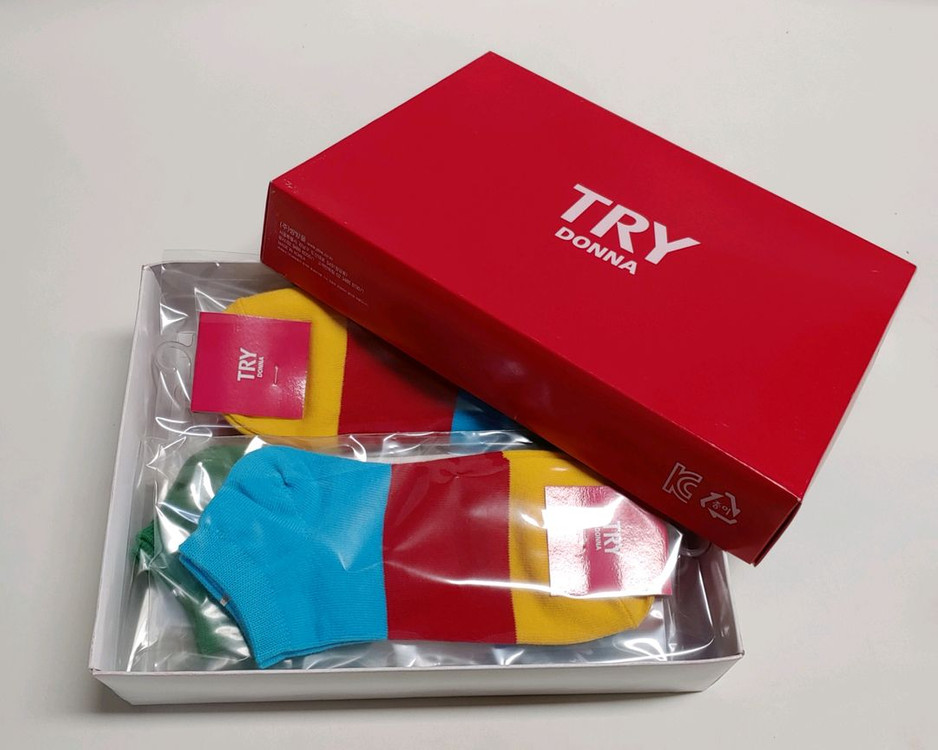 TRY DONNA 여성 발목양말 10켤레 세트입니다 - 다양한 색상 조합으로 구성되어 있습니다 - 사이즈는 23~25cm입니다 국산, 새제품 색상패턴은 이미지에 있는 3종 2+4+4 해서 합 10개 직거래, 낱개판매하지 않습니다 겨울양말 아닙니다 스포츠양말 처럼 두꺼운 제품 아닙니다 재질은 면, 스판 등 혼사 입니다 상품택 근접 촬영한 사진 참조하세요 크기 비교용으로 같이 촬영한 콜라는 500ml 입니다 택배발송시 중량, 부피, 포장 등의 이유로 사진에 트라이 상품명 있는 외부박스는 제외하고 개별 비닐포장된 제품 10개만 발송해 드립니다 외부박스 필요하신 경우는 금액 2천원 추가하시면 트라이 외부박스 포함해서 발송해 드립니다