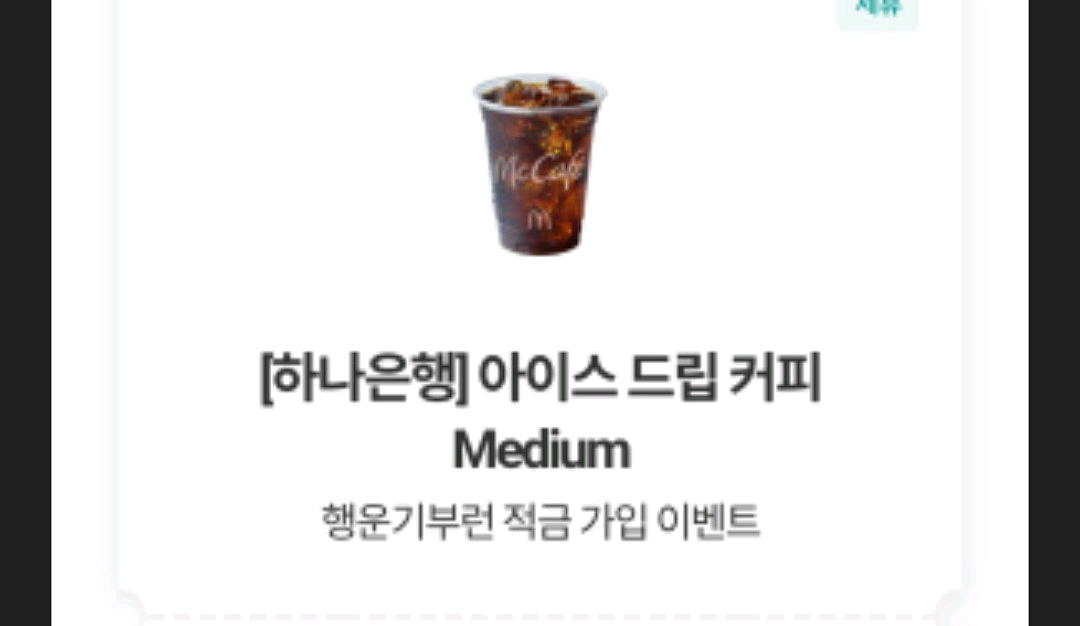 맥도날드 아이스 드립 커피 1잔. 12026 09 30까지