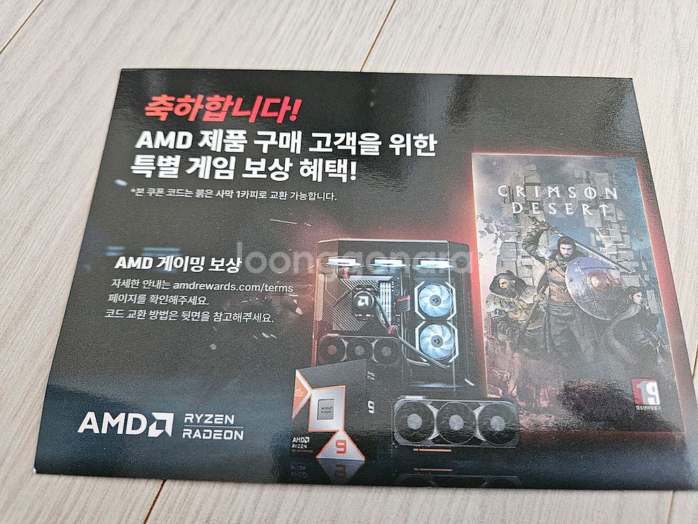 붉은사막 게임 번들 코드입니다 cpu 구매후 받았어요 스크레치 긁으면 나오고 직접등록하셔야합니다 택배비 3천원 별도 원하시면 긁어서 코드 보내드립니다