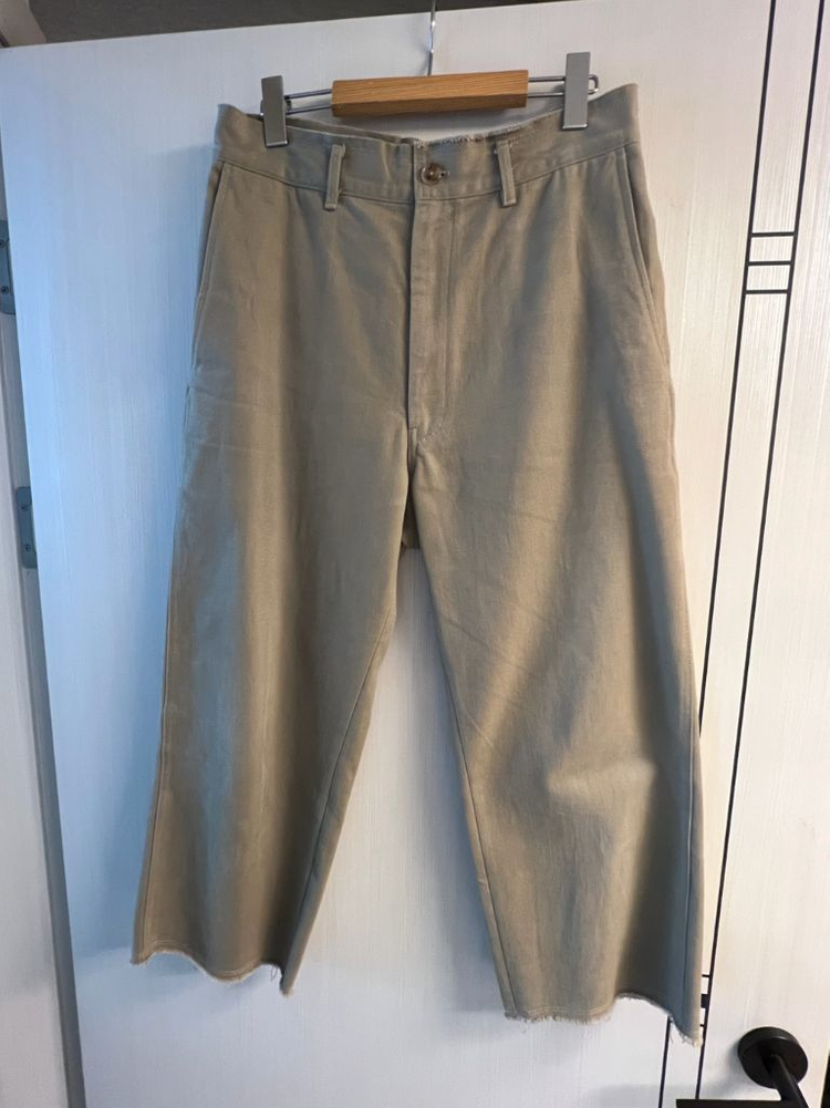 브라운야드 와이드 크롭 면바지입니다. 와이드한 핏에 크롭 기장으로 트렌디하게 연출 가능합니다. 밑단 컷팅 디테일로 포인트를 더했습니다. 사이즈 1 (32 정도) 약간 골덴 재질이라 겨울에 입기 좋아요