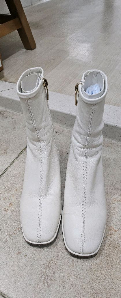 개인정보(거래정보)를 주고받는 행위는 사기에 노출될 수 있으므로 즉시 중고나라로 신고해 주세요슈콤마보니 앵클부츠 230사이즈예요. 화이트 컬러에 브라운 솔로 깔끔하고 세련된 디자인이에요.보시다시피 전체적으로 상태 양호한 중고 제품입니다. 택포