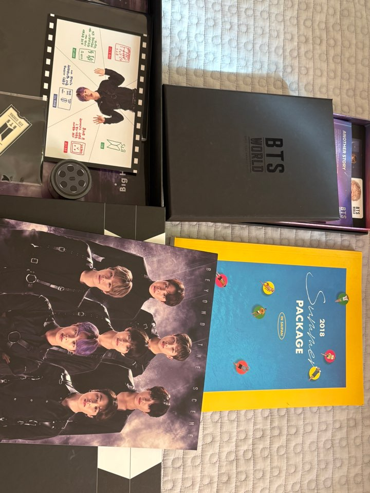 방탄소년단 굿즈 처분합니다! 1. 아미 멤버십 키트 7기 (카드지갑?은 미포함입니다) 2. 2018 섬머 패키지 포토북 3. BTS 월드 앨범 빨리 처분하고자 저렴하게 각 8000원에 판매합니다! 편의점 택배, 우체국 택배 모두 가능합니당 편하게 연락주세요:)