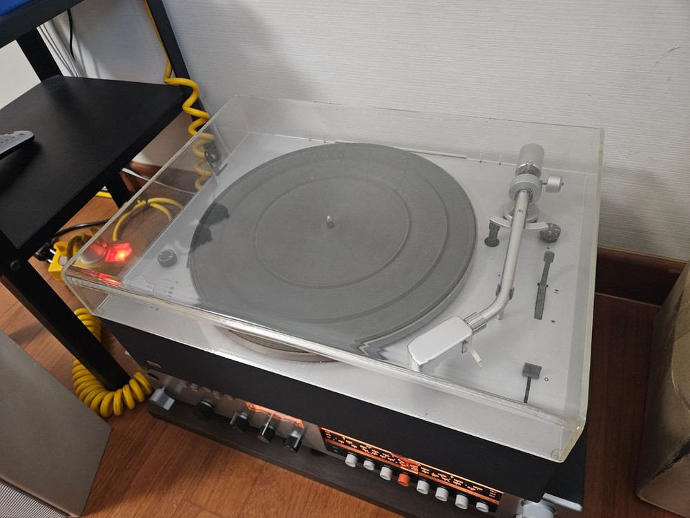 ----------------------------------------------------------------------------------------------------------- ※ 본 제품은 중고 제품입니다. 구입 후 교환, 환불이 불가하니 충분히 생각해보시고 구입바랍니다. 브라운 빈티지 턴테이블 PS500 팝니다. 중고 2차 구매자입니다. 2년 전 쯤 빈티지 앰프랑 셋트로 구입해서 사용했습니다. 턴테이블에 대해 아는바가 없어, 바늘이고 뭐고, 전 주인분이 셋팅하신 그대로 먼지만 털어가며 사용했었습니다. 그러기에 기술적인 부분엔 답변이 완전 불가한점 미리 말씀드립니다. 특이사항으로는 제품 전원이 한 번에 켜지지 않습니다. 동영상에 첨부하였지만, 아래로 내렸다 올렸다를 한 번 해야 시동이 걸립니다. 한 번 켜지면 그대로 쭉 사용했기에 불편함은 못 느꼈지만, 이부분은 영상 참고해주세요. 그리고, 전 주인분이 뒷 부분 단자가 RCA 단자인가로 개조 되있다고 했습니다. 원래는 특이한 단자 모양인데, 요즘 앰프들과 연결해야되서 저걸로 했다고 하시네요. 사진 참고해주세요. 저는 빈티지 앰프랑 셋트로 구입해서 연결 할 수 있게 선을 셋팅해주셔서 그대로 사용했습니다. 전원코드는 해외 코드 모양이라 한국의 기존 것보다 얇아 헐렁하기에 젠더를 사용했습니다. 같이 드려요. 전압은 프리볼트인지, 변압기 없이 바로 꽂아 사용 가능했습니다. 그외엔, 턴테이블의 뚜껑이 제품에 바로 닿는게 찜찜해서, 모서리에 고무스티커를 붙였습니다. 제품이 엄청 무겁고 진동이 있으면 안되는 걸로 알기에, 택배 거래 같은건 절대 안되고요. 퀵 거래는 구매자 본인이 알아서 턴테이블을 옮길 수 있는 기사님을 보내시는걸로 진행하겠습니다. 당연히 배송비는 구매자 부담입니다. 가능한 직거래로 진행하며, 거래 지역은 서울 금천구 독산제3동 입니다.