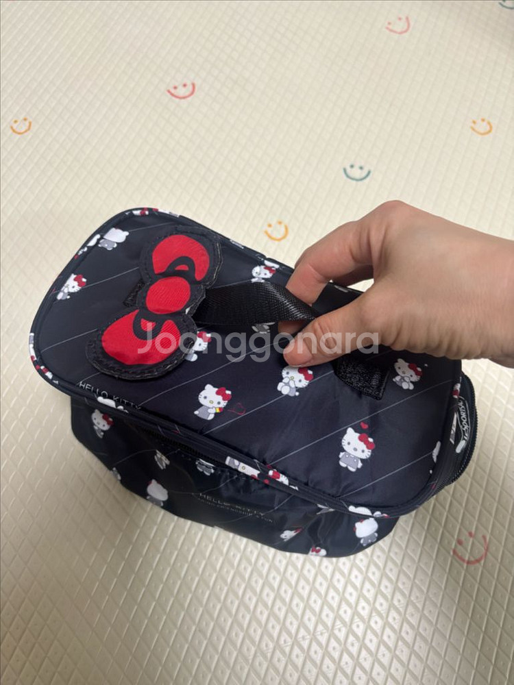 레스포삭과 헬로키티 화장품 파우치(새상품) - 검정색 바탕에 헬로키티 패턴이 귀여워요 - 내부는 빨간색으로 되어있습니다 사이즈: 가로23cm X 세로 13cm X 폭 13cm 택포 반품X 환불X