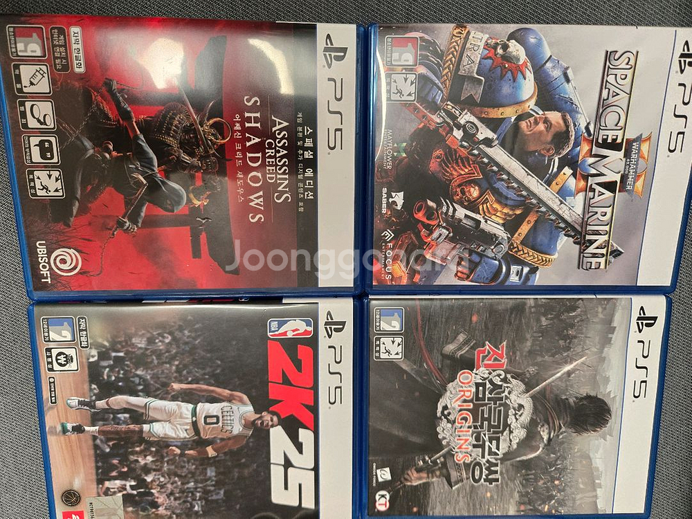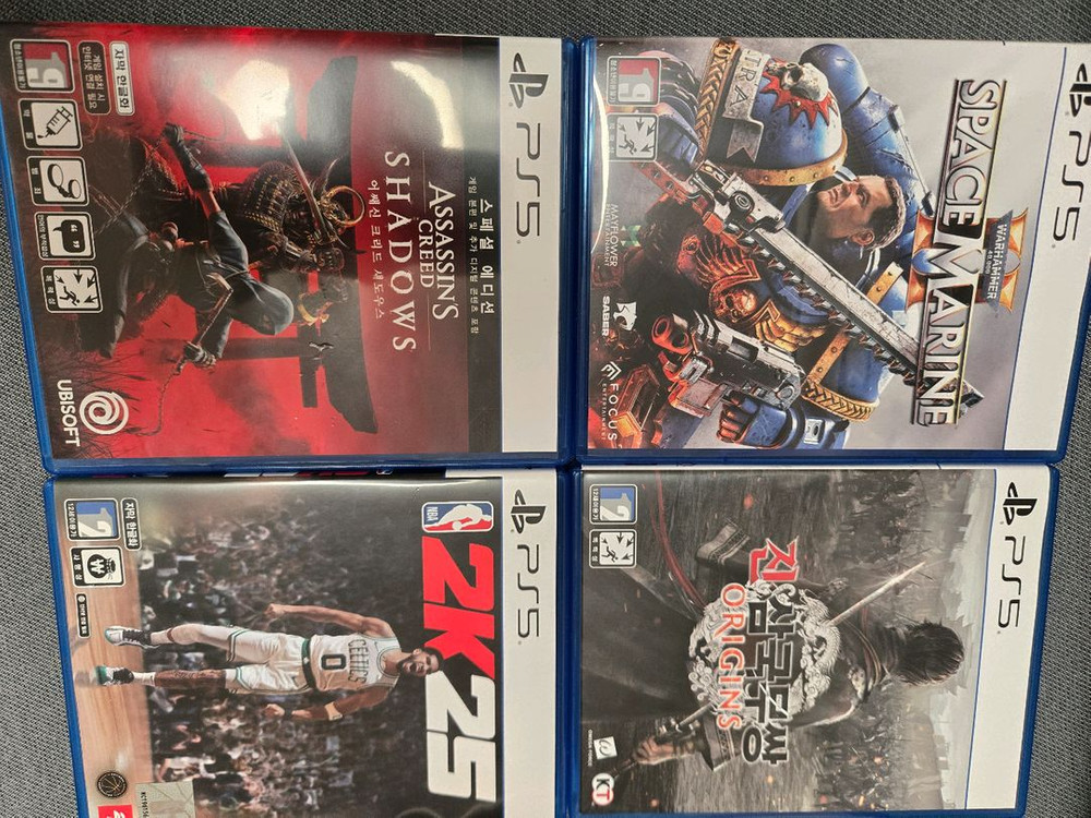 PS5 어쎄신크리드 섀도우스, 스페이스 마린2, NBA 2K25, 진삼국무쌍 오리진 4개 판매합니다. 케이스 상태 양호하고 디스크도 깨끗해요! 스페이스마린2 - 4만 진삼국무쌍 오리진 - 4만 어쌔신 섀도우스 - 3.8만 nba2k25 - 1.5만 택배비 별도, 우체국 4500원, gs반값 2000원