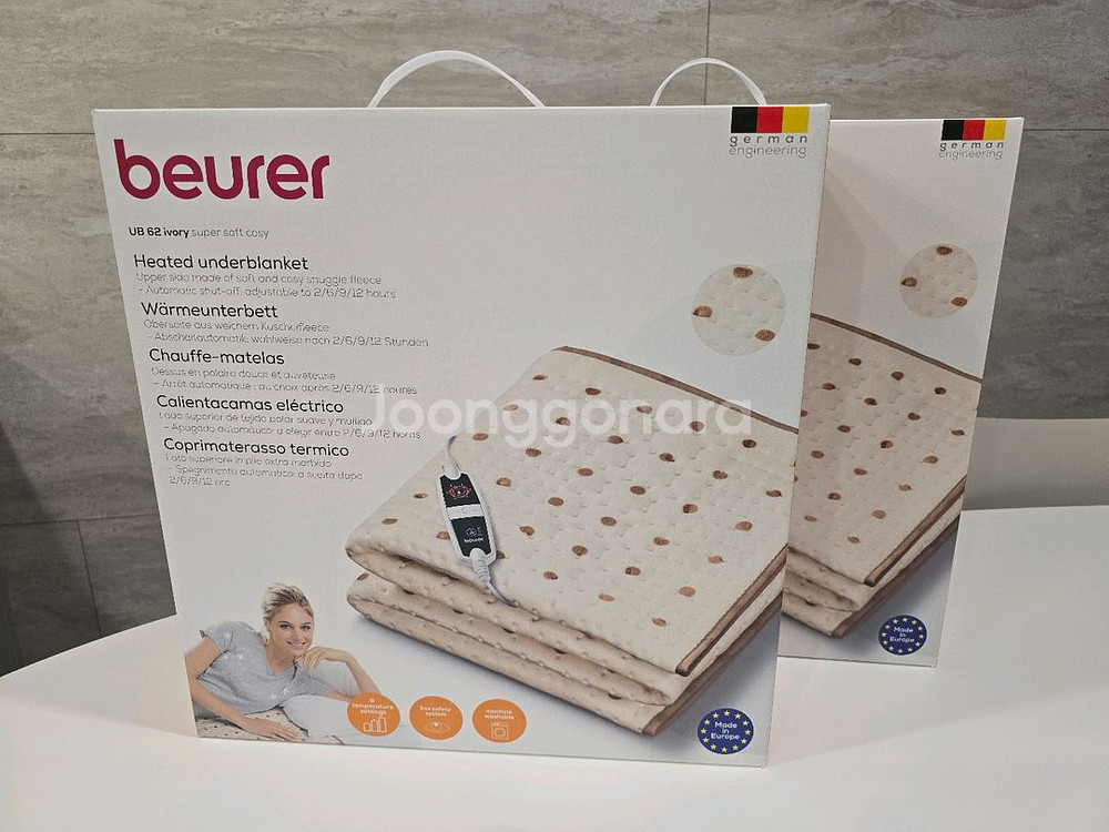 -1인용 전기요 보온매트 총 2개 묶음 판매합니다. -미개봉 새상품으로 보관상태 최상입니다. -공식 홈페이지 기준 1개 십만원 초반대 제품입니다. -우체국 택배로 보내드리겠습니다. <독일 보이러 beurer UB62 ivory 제품 정보> -유럽/국내 전자파 인증 -6단계 온도조절 가능 -2/6/9/12시간 자동 꺼짐 타이머 -물세탁 가능