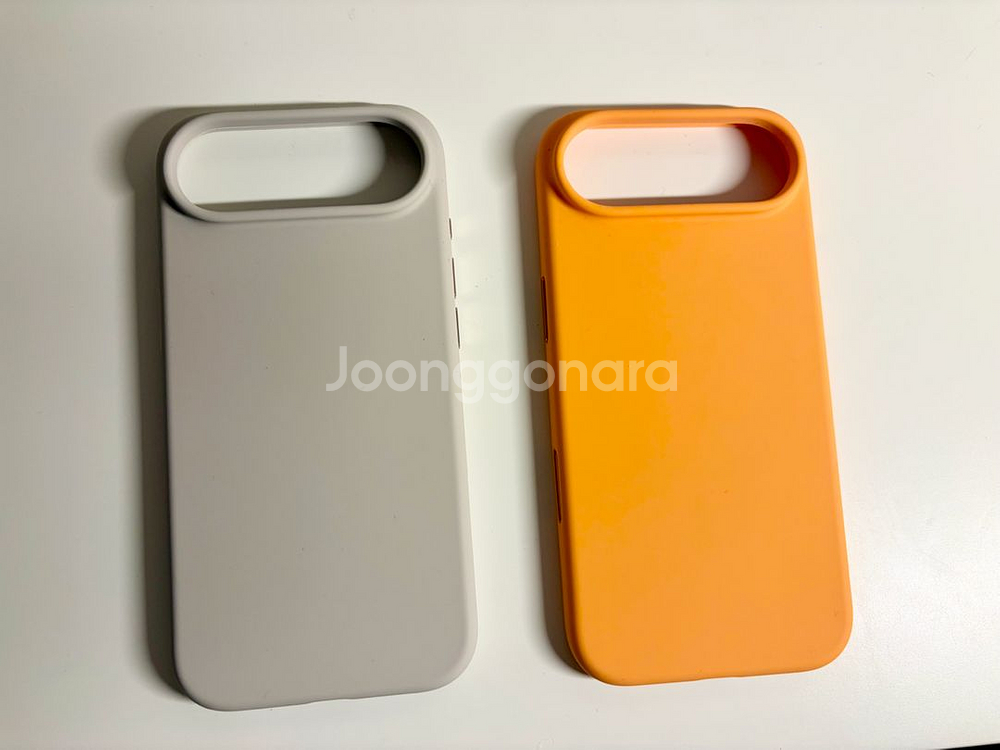 아이폰 17 에어 엘라고 맥세이프 실리콘 케이스 2개입니다. 오렌지색과 스톤색으로 구성되어 있고, 상태 깨끗합니다. 첫번째 사진이 실제 색상과 가깝고 정확한 색상은 엘라고 판매페이지 참고해주세요.