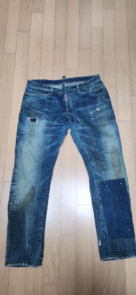 왕년에 디퀘 레전드 진 중 하나인 디스퀘어드 09FW 더티진 섹시핏입니다. 46사이즈이긴 하나, 작게 나와 44입으시는 분들이 잘 맞으십니다. 상태는 연식대비 매우 좋습니다.