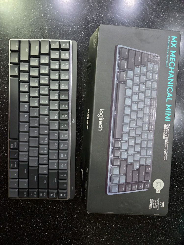 미니 기계식 키보드입니다. 박스와 본체 모두 깔끔한 상태로 보관되어 있어요. 컴팩트한 사이즈로 책상 공간을 효율적으로 사용할 수 있습니다. 로지볼트, 케이블 없어요