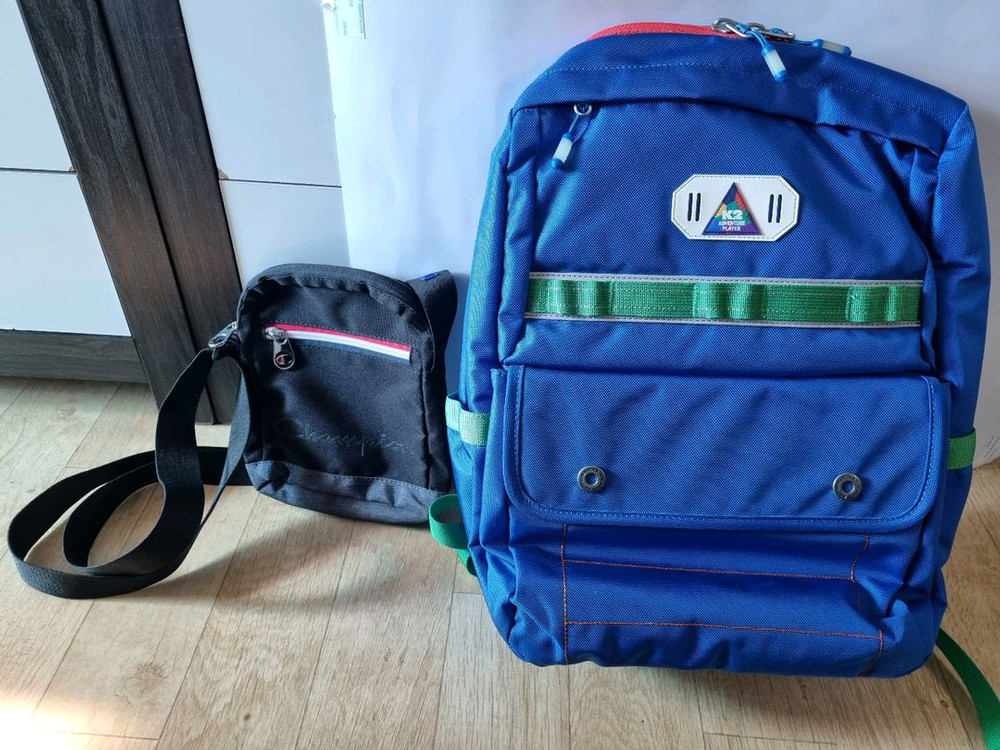 K2 초등학생 책가방 블루 빛이 들어가서 실제 색상과 차이 있음 세월감 있지만 세컨 가방으로 좋아요 보관중 구김 있어요 미사용 챔피온 미니크로스백 블랙 핸드폰등 소지품 넣고 다니기 좋아요 도서산간제외 교환반품환불에눌 불가