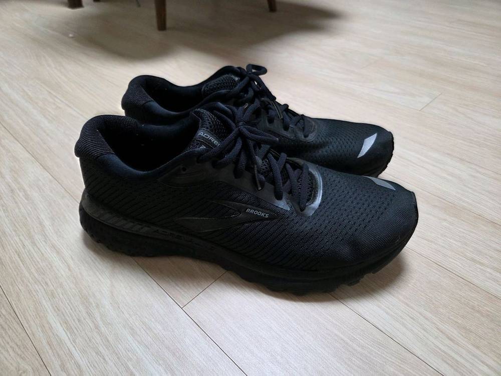 브룩스 아드레날린20 290cm 팝니다. 많이 싣지 않아 상태 좋습니다. 다만 신발 엄지발가락 닿이는 부분이 굽어진거 같아 조금 불편해서 싸게 팝니다