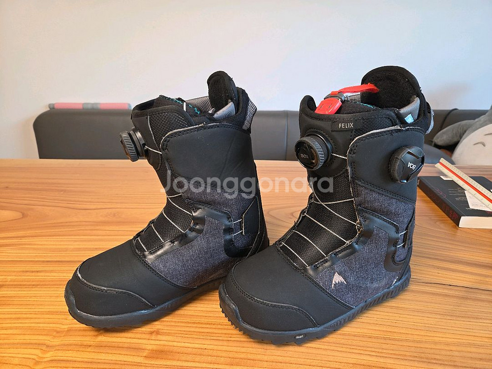 [매물 소개] - 사이즈는 235mm부츠입니다. - 아내가 스키와 보드를 같이 타서 사용량이 적고 - 관광보더 스탈이라 성능 저하는 거의 없습니다. - 사진과 같이 상태 매우 좋습니다 [거래 방법] - 직거래 : 서울 성북구 보문역, 중구 서소문 시청역 인근 - 택배거래 : 택배비는 구매자 부담으로 하고자 합니다. 택배비 포함 시 4천원 추가.