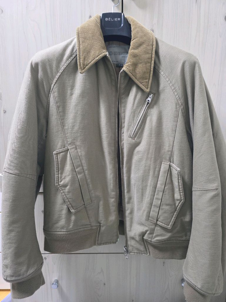벨리에 네오 시티 플라이트 자켓 베이지 색상입니다. 톤 다운된 베이지 색상이라 코디하기 용이합니다. 깃 부분은 코듀로이 소재로 되어있어 포인트를 줍니다. 문의 없으시면 바로 안전결제해주시면 됩니다! 가슴 60cm / 총기장 63cm / 화장 101cm