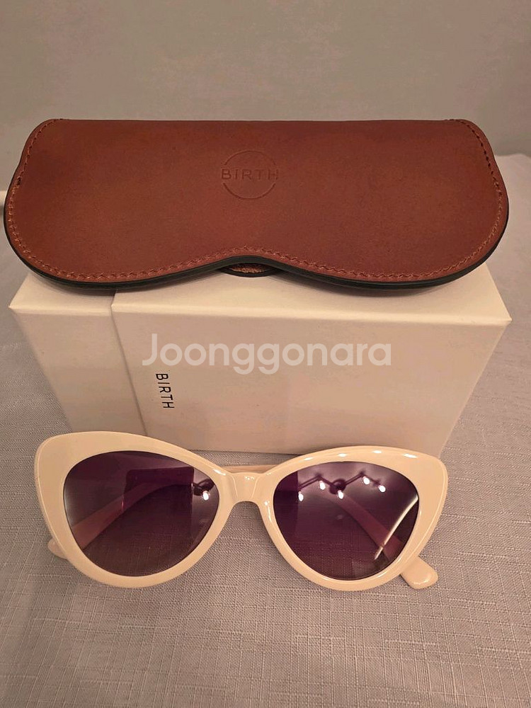 BIRTH 브랜드의 아이보리색 선글라스입니다 케이스와 박스 전구성 19만 9천원에 구매 시착만 한 완전 새제품입니다. 손이안가고 짐정리로 내놓습니다. 득템하세요 직거래, 탁배 다 가능 교환, 환불 안됨