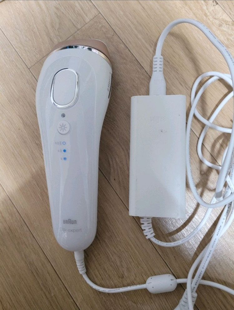 브라운 실크 엑스퍼트 IPL 레이저 제모기입니다 피부톤에 맞춰 자동으로 에너지 강도를 조절해줘서 안전하게 사용할 수 있어요 피부과에서 레이저 제모를 받는 것과 비슷한 효과를 집에서 간편하게 누릴 수 있다는 장점이 있습니다 충전기 포함입니다 단품입니다 중고거래상 환불은 불가능합니다 양해부탁드립니다 (택배포함 가격입니다)