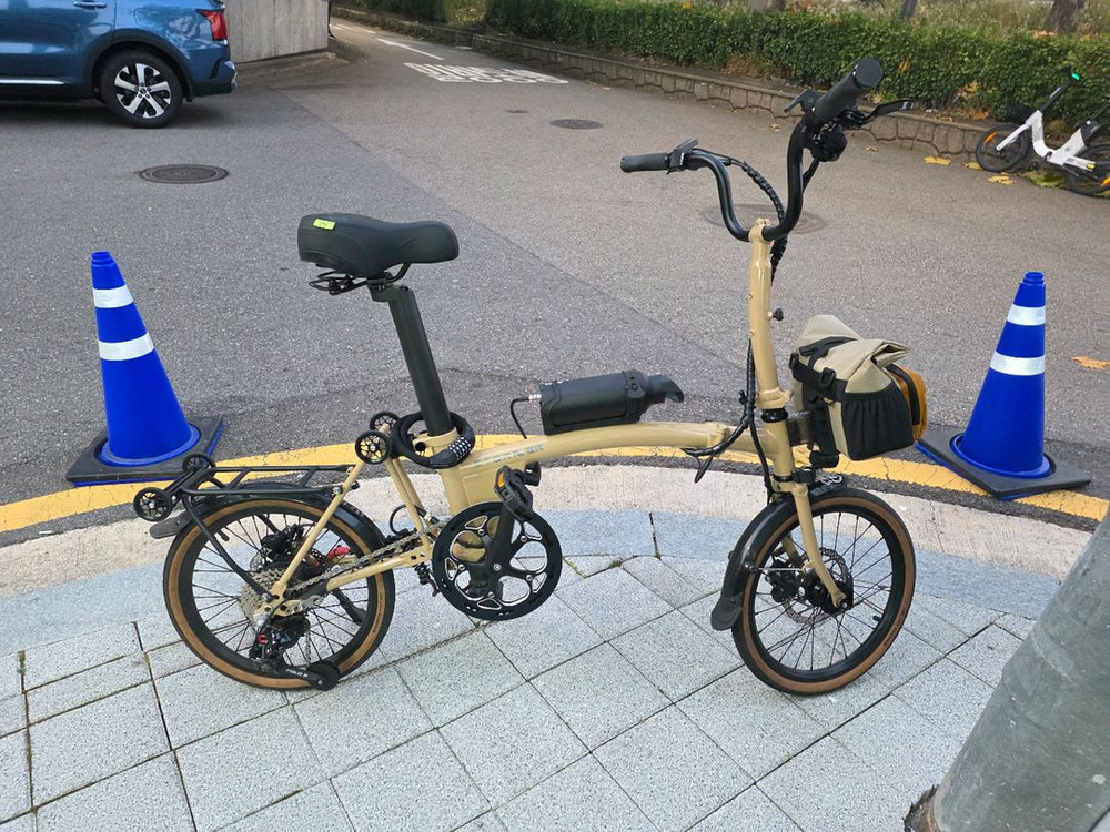 스톰BR 접이식 전기자전거 2024년. 구입/ 2025년 7월. 2차구매. 주행거리 1600 구입후 기어교환 7단에서 8단으로. 모듈교환. 타이어 신품교환(뒷타이어).전립선안장교환.서스. 가방장착. ㅡ 총39만원 투자. 안장형밧데리 기본에 물통형밧데리는 선택적으로 장착가능. 둘다 장착시 60km이상 주행가능.(정품삼성밧데리) 업무용보다 스타일리쉬한 취미용에 어울립니다.차 트렁크에 싣고 주말에 경치 좋은곳에서 탔습니다. 늘 포장씌워서 보관하고 아껴서 탔습니다. 로드바이크 타보고자 매물로 내놓습니다. 직거래만 하고, 현장네고는 사양합니다. 직거래는 당산역, 선유도역 근방가능합니다. ☆ 택배로 보내라면서 사기치려고 하는 사람들, 안통하니까 연락금지.