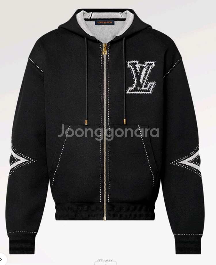 블랙 색상의 루이비통 후드 집업입니다. 가슴 부분에 루이비통 로고가 포인트로 들어가 있습니다. 면 재질이라 착용감도 편하고, 간절기에 걸치기 좋습니다. 루이비통 그래픽 인따르시아 지퍼 코튼 후드 블랙 화이트 사이즈L 백화점구매 새제품 구성 옷 슈트캐이스 옷걸이 인보이스 가격300만원