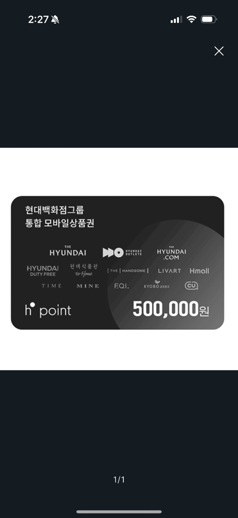 백화점에서 사용 가능한 50만원 모바일 상품권이에요. 온라인으로 간편하게 사용할 수 있어서 편리합니다. 현대백화점 더현대 현대아울렛 등 사용가능합니다