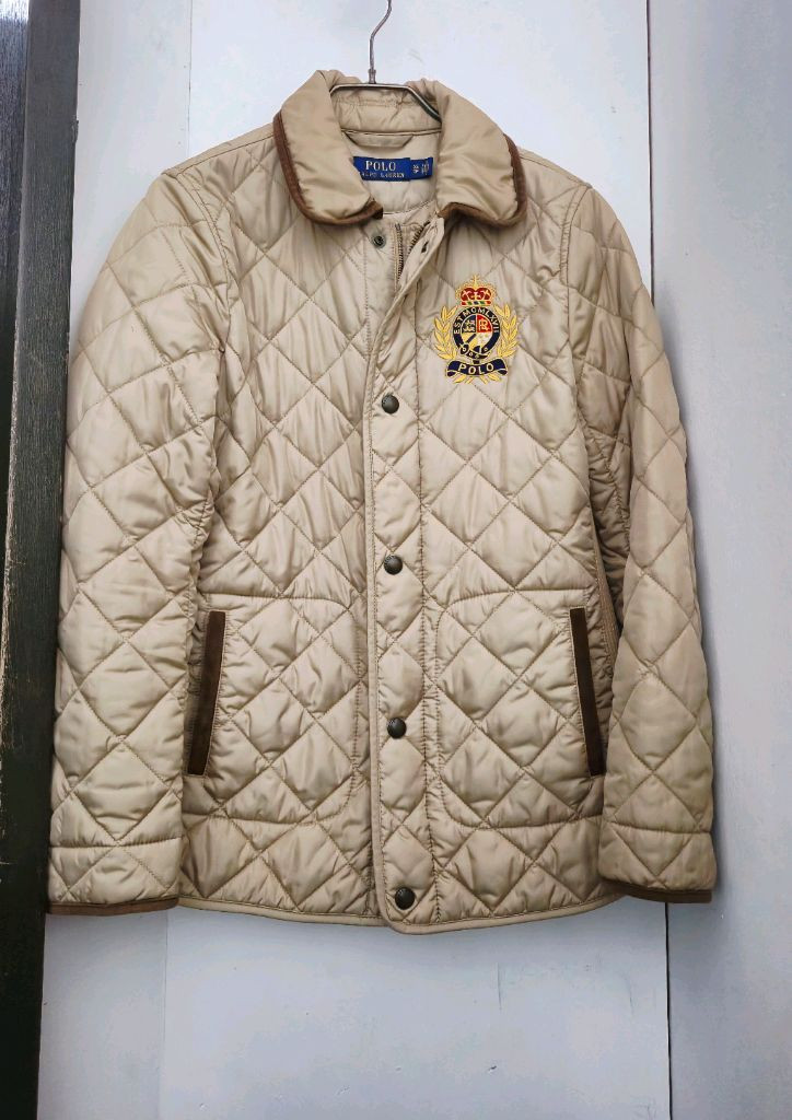 폴로 랄프로렌 베이지색 퀼팅 자켓입니다 가슴 부분의 폴로 로고 자수가 고급스러운 느낌을 줍니다 톤다운된 색감이라 어느 옷에도 잘 어울립니다 표기된 사이즈 XS 이지만 실사이즈는 (55 ~ 마른 66 ) 정도입니다 총길이는 68 ㆍ 가슴단면 45 입니다 상태는 데미지 없는 깔끔 하고요 자연스러운 착용감 있는 컨디션 입니다