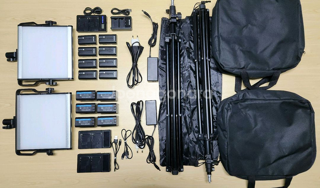L4500 LED 전원, 배터리 조명, 디머블 ~5600K, 메탈 패널 스튜디오, 야외 삼각대 촬영지원 2셋, 배터리 14개 일괄 - 색온도 조절 가능합니다 - 휴대용 가방 포함되어 있습니다 - 배터리, 충전기, 스탠드 모두 포함되어 있습니다 사진에 보이는 모든 구성품 드립니다 LED Metal Panel Device 2ea, indoor Power Supply adapter 2ea Triopod 2ea BATMAX Lithium ion Rechargeable For Son.NP-550/NP-570 7.2v 2,600mAh 8ea 2Port Charger 2ea BATMAX Lithium ion Rechargeable For Son.NP-750/NP-770 7.2v 5,200mAh 6ea 2Port Charger 2ea 야외 사용은 없었고, 실내에서 약 10회 미만 사용하고 봉인한 상태입니다. 조명 패널 및 배터리 상태 양호합니다. 일괄 판매합니다. 직거래는 주중 구로구 구로디지털단지역 일대,근처 지역은 협의 가능 택배거래는 4천원 별도입니다. 택배는 노리턴,파손면책 동의 하시는 분께 보내드리겠습니다. 관심가져 주셔서 감사합니다. PS. 각종 사기성 문자나 채팅 일절 대응하지 않습니다. 꼭 구매하실분만 연락 바랍니다. ^^