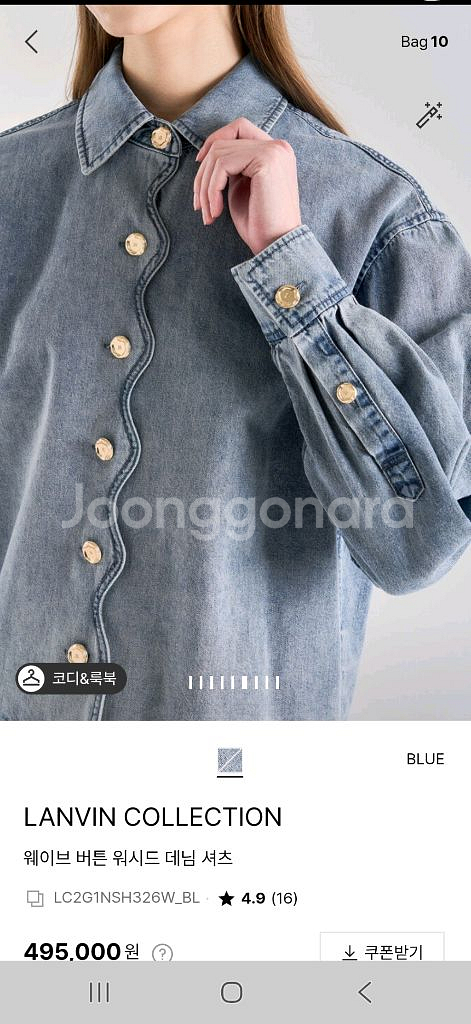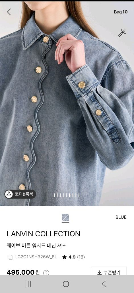 랑방컬렉션 신상 데님 셔츠입니다 셔츠이지만 아우터로도 활용가능해요 물결무늬 라인의 단추와 밝은 색상이 페미닌하고 이뻐요 인기상품이어서 현재 전체 품절되었어요 택 그대로 달려있는 새상품 입니다 정가 49만5천, 55사이즈(82)입니다