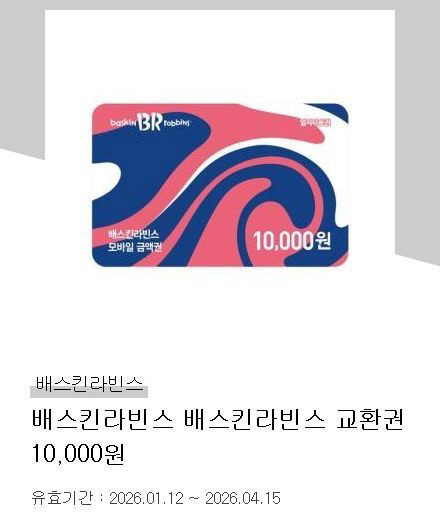 배스킨라빈스 1만원 교환권 (잔액 분할사용x, 1회 주문 1장 사용 가능) ~26.4.15 챗주세요^^ 배라 베라