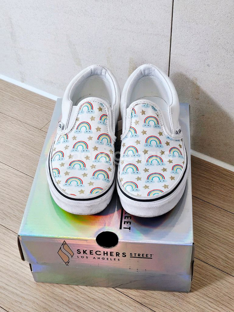 반스 아동 운동화입니다. us2.5사이즈 20.5cm 입니다. 5회정도 착용한 신발이라 깔끔합니다. 세탁은 하지 않았으니 세탁 하셔야해요. 미국 여행시 구매한 제품이라 우리나라에는 같은 디자인 찾아보기 아마 어려운 귀여운 디자인입니다. 발볼 넓지 않은 아이에게 추천합니다. '200신는 아이에게 맞을까요?' 이런 질문은 아이들마다 발 모양이 다르고 편안함을 느끼는 사이즈가 다르기 때문에 저도 몰라서 대답 못해드려요🥲 택포 12,000원입니다.