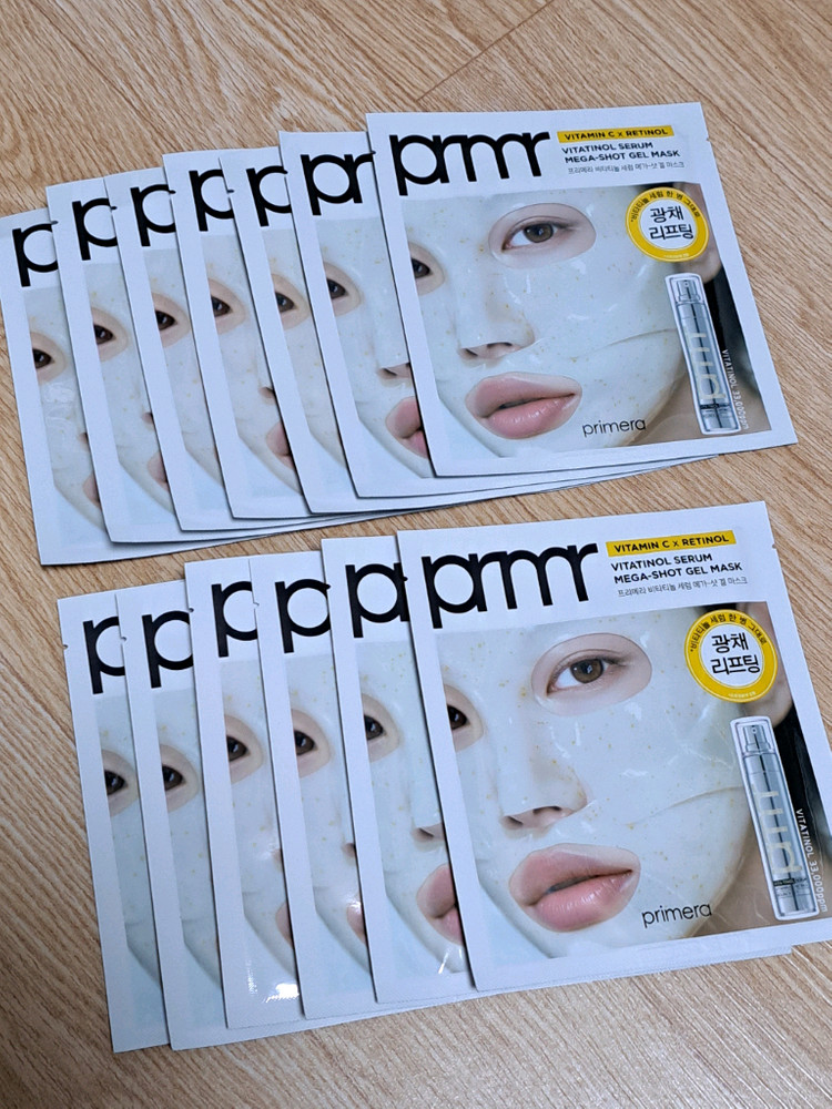프리메라 비타티놀 세럼 메가-샷 겔 마스크 13매 (사용기한 ~20270623, 20270929까지) 겔 마스크 총 13매입니다 - 택배비: 반값택배 2200원, 일반택배 3200원 (계좌입금으로 거래하시면 수수료 등 제외해서 CU반값택배비 포함 43,800원에 드립니다)