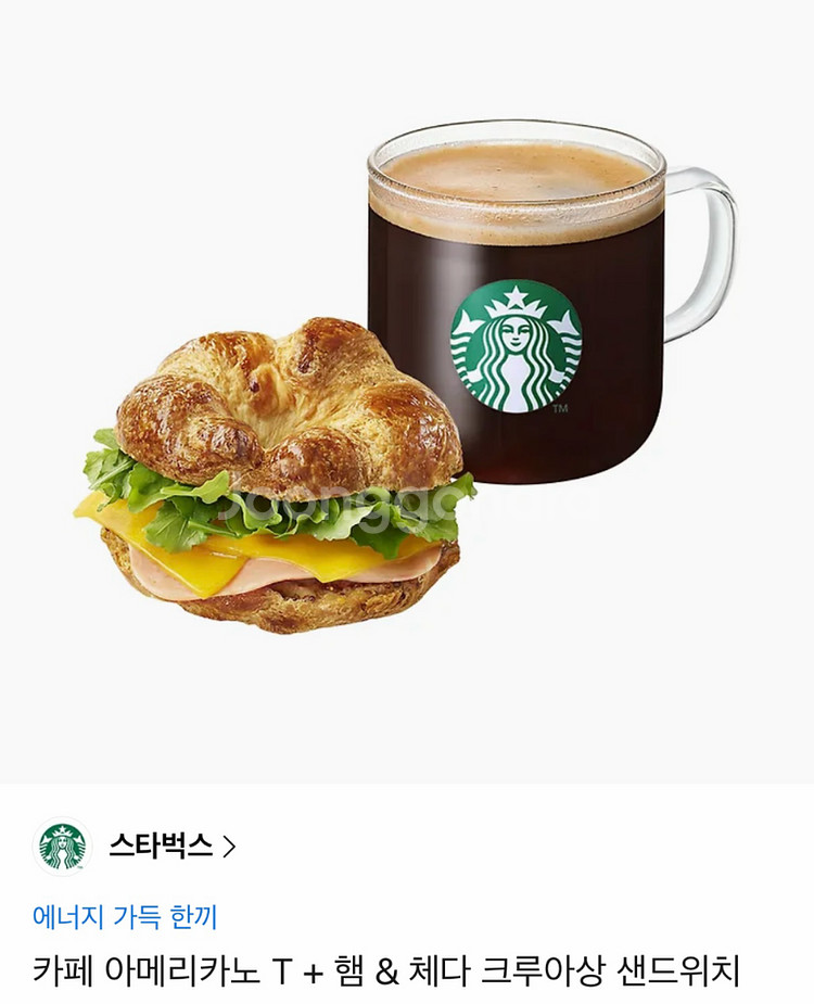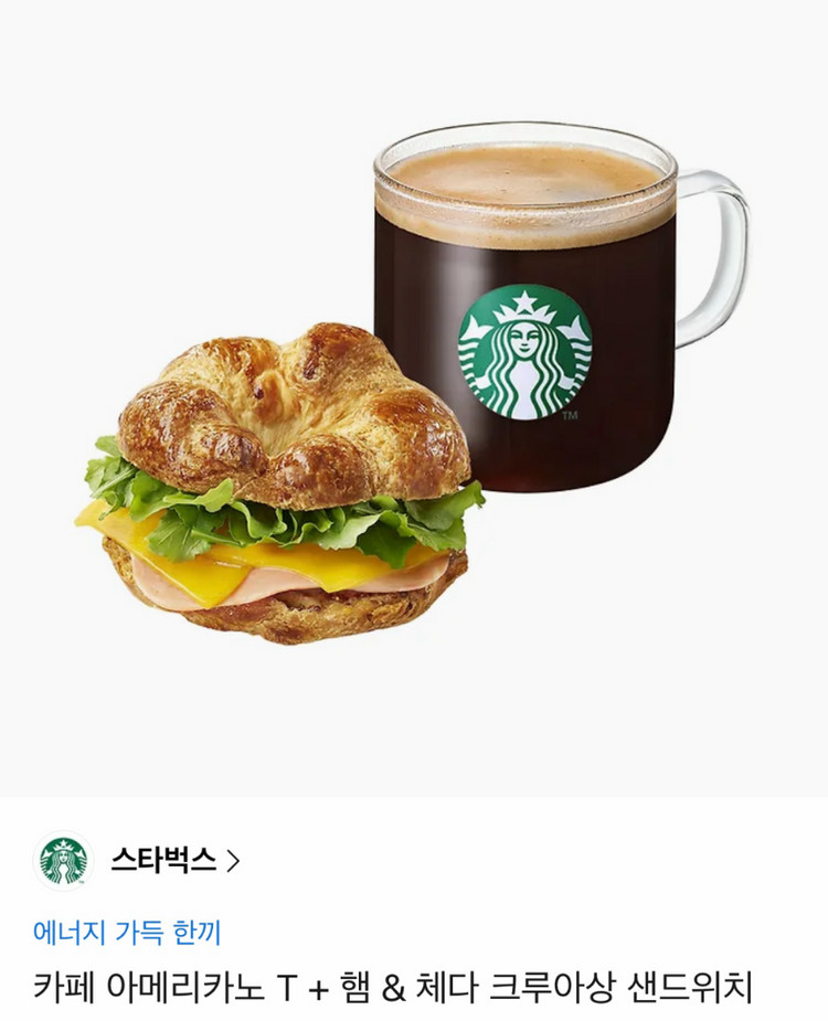 스타벅스 카페 아메리카노 T + 햄 & 체다 크루아상 샌드위치 기프티콘