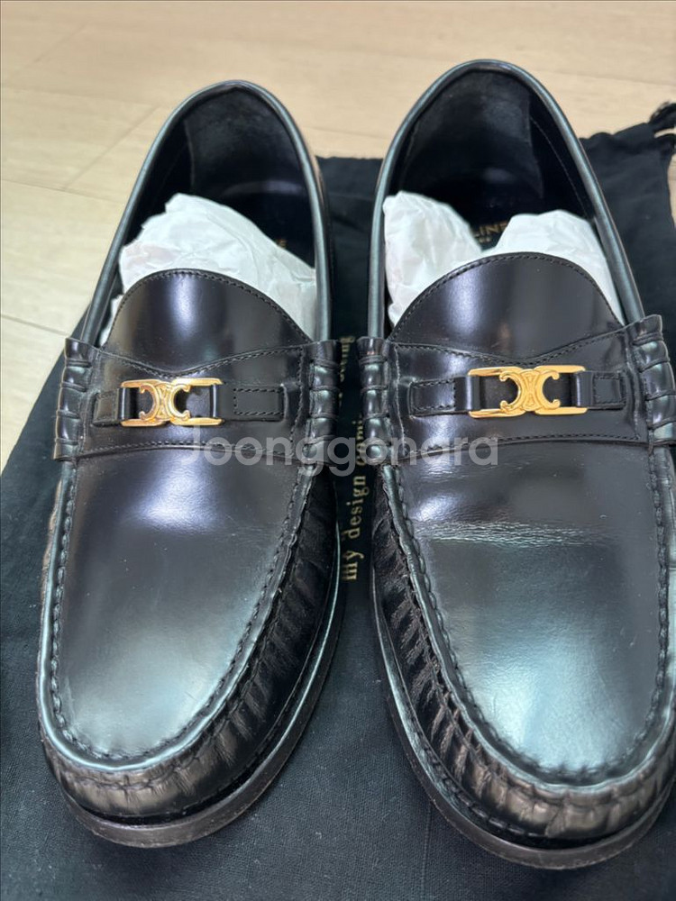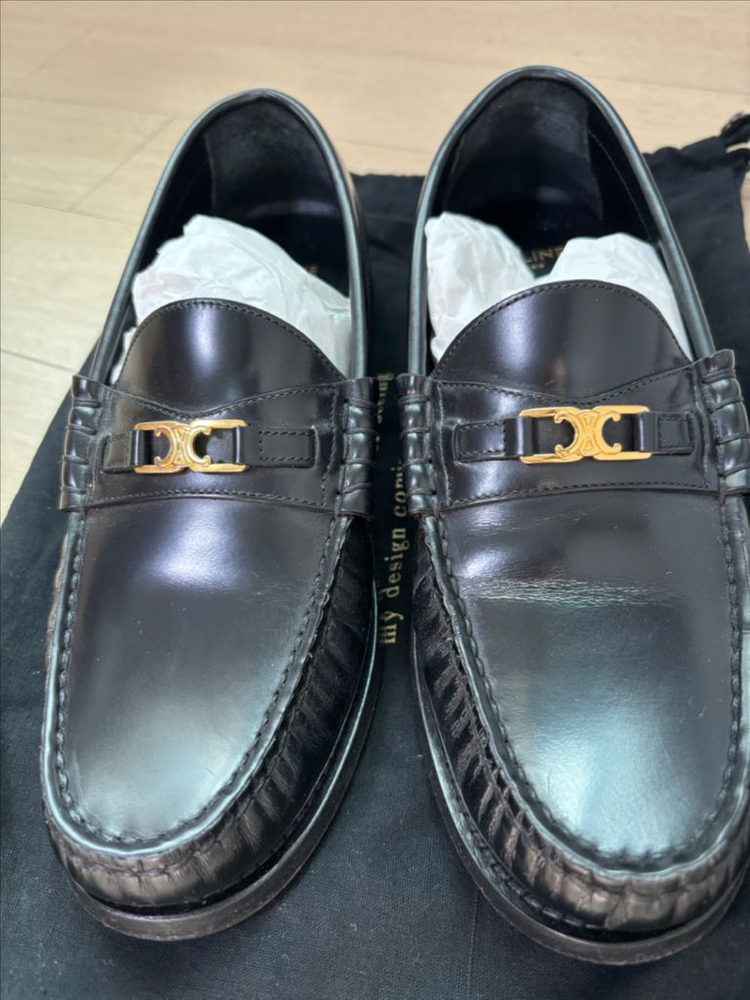 블랙 로퍼 38사이즈입니다. 골드 메탈 장식이 포인트이고 전체적으로 사용감은 있어요. 정품 더스트백 상자 인보이스 함께 드립니다.. 개인거래로 반품 환불어려워요