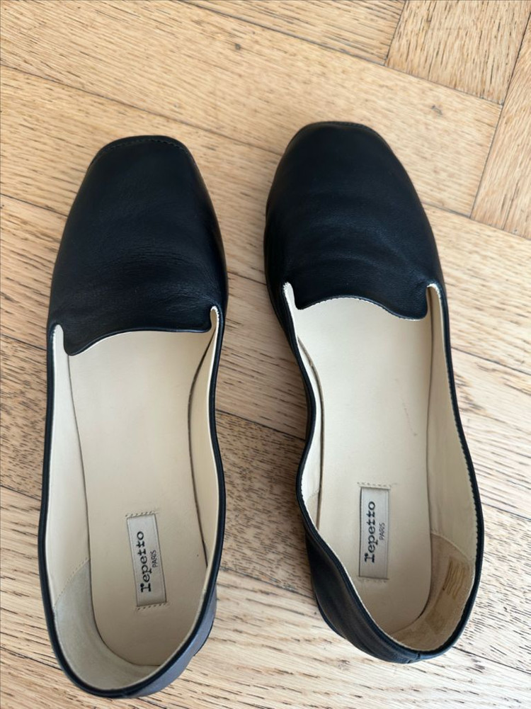 레페토 플랫슈즈 블랙 색상입니다 사이즈는 38½입니다. (245 추천) 심플한 디자인의 굽 없는 플랫슈즈 깨끗하고 깔끔한 상태로 보관 중입니다
