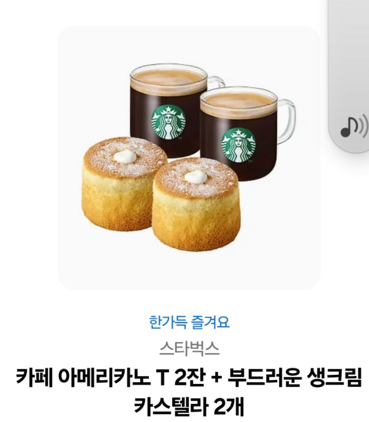 스타벅스아메리카노T2잔 + 부드러운 생크림 카스텔라 2개 세트