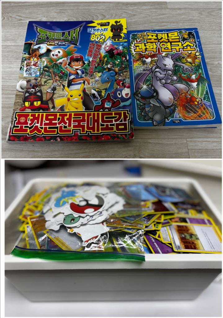 포켓몬 책 2권++스티커+ 카드 아주 많이(수납함 제외) 카드 엄청 많아요. 수납함은 제외입니다. 이사준비로 빠른 처분 원해요