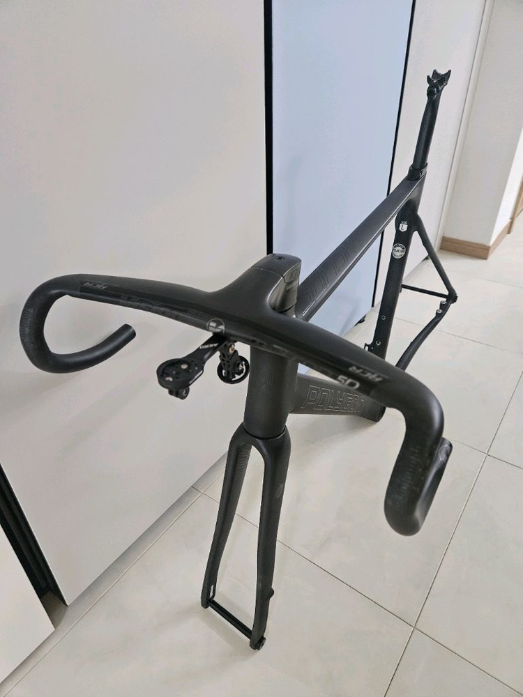 2023년 6월 신품구매 후 프레임셋 기변하면서 판매합니다. 프레임+핸들바+안장 구성이고요 모두 순정입니다. 핸들바는 비전메트론 5d 일체형 카본핸들바입니다 찍힘이나 크랙은 전혀 없으며 생활기스정도 있습니다. 아크로 트리플 마운트 같이 드립니다.