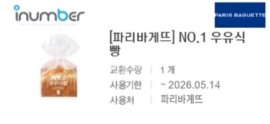 파리바게트 우유식빵 판매합니다.메뉴변경가능 위 동일상품입니다. #파리바게트 우유식빵 3,500원권-3,100원에 판매 ~2026.05.14. ***주의!!!가격인상으로 동일제품이나 더 비쌀 수 있습니다.3,500원 금액만큼 다른 케이크나 빵,음료 등 타제품으로 교환가능합니다. 입금 확인후 전송드리겠습니다. ##가격흥정답변 드리지않으니 문의하지 말아주세요~ ###기한연장불가.모바일 특성상 발송 후에는 취소.환불 어렵습니다