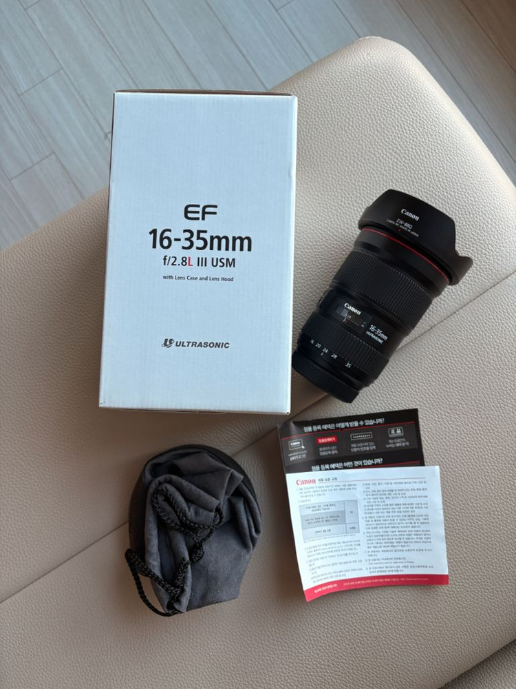 안녕하세요 캐논 EF 16-35mm F2.8 III 렌즈 판매 합니다. 렌즈 전체적으로 깨끗하고 기스 없습니다 결과물도 물론 잘나옵니다. 후드 안쪽에 파손이 있습니다. 사용하는데는 전혀 지장 없습니다. BW 필터 포함 박스 풀셋 직거래 경기 안양 택배가능 판매자 부담
